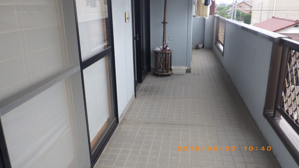 社長は昨日、雨漏りしているという現場へ確認に行きました。まだ施工途中の防水工事なので、漏って当然ですが、早く施工してあげたいです。2階の玄関前がタイルの廊下になていて、そこが劣化すれば、タイル目地から水が染みて下の階に雨漏りしてしまいます。