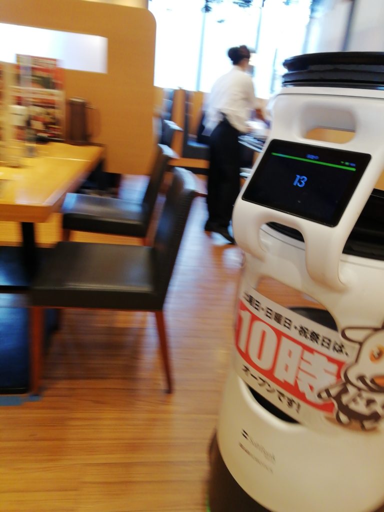 ステーキの宮で、配送ロボットに遭遇 2022年6月9日 お知らせ by kuchikitec. 社長から、ハイブリッドプライマーが足りなそうだから、持ってきて、と連絡があり、高崎の現場に持っていきました。ちょうどお昼時となり、久しぶりに社長と二人でステーキの宮へランチ食べに行きました。そして、配送ロボットに遭遇。 いらっしゃいませ、と言って、お水を運んでくれました。取った後は、グレーのボタンを押してくださいと書いてあったのですが、わからなかったので、ありがとう、と言ったら、帰っていきました。 前の記事 次の記事