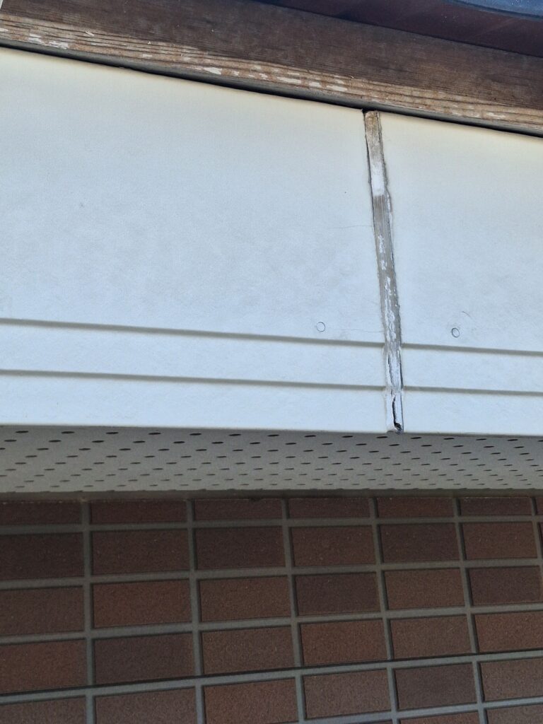 よく見ると屋根と破風板の間に木があり、それも処置が必要のようです。外壁の目地はかなり傷んでいますが、コーキングの打ち替えはしません。一般的な塗装ですと、コーキング打ち替えでかなりの予算が必要になりますが、クチキテックウォールの場合、目地自体を完全に埋めてなくしてしまい、コテ模様の塗り壁にするので、目地の処置がいらないのです。