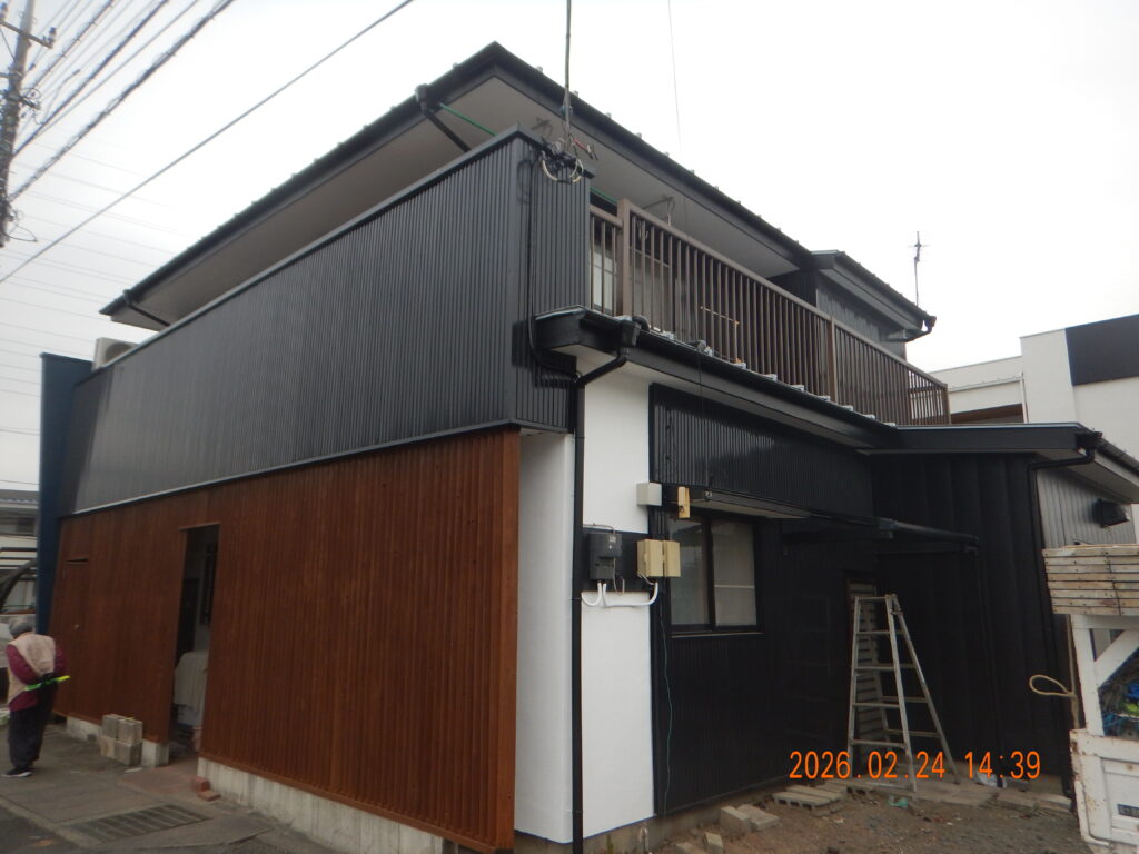 外壁、黒 2026年2月24日 ブログ 施工実績 by kuchikitec. 本日完了した、高崎市の外壁・屋根塗装工事。塗料は快適サーモSi。色は外壁が黒、屋根は、ライトグレークール。外壁、黒というのは、あまりないですが、けっこういいもんですね。普通の黒だと、暑そうですが、遮熱塗料の快適サーモ、使ってます。2階に娘さんの部屋があり、暑いとのことで、屋根は白っぽく。かなり違いますよ。 前の記事
