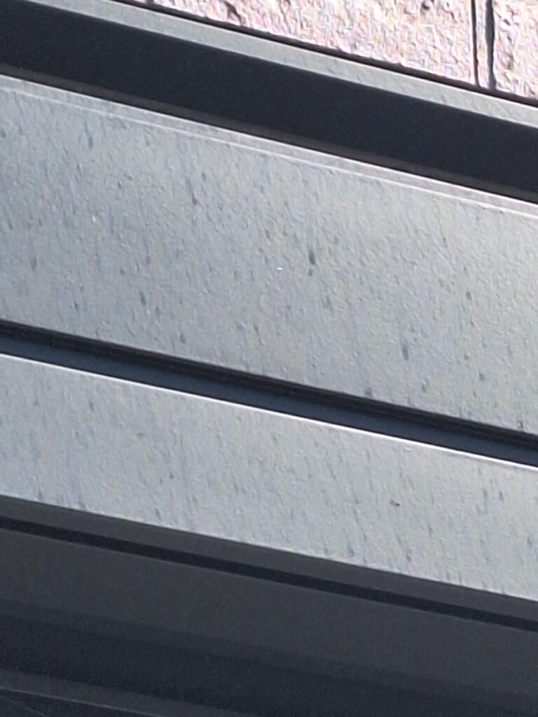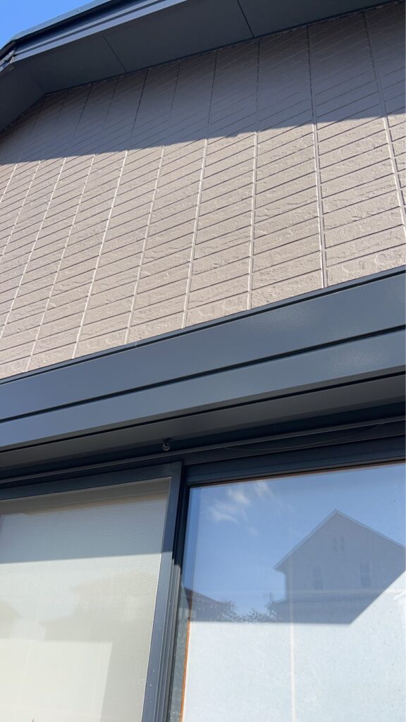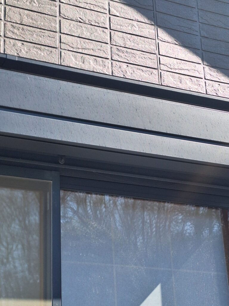 本日足場解体した現場、完了後行って見ると、一箇所だけなのですが、シャッターボックスの塗装に不具合発見。雨に降られたのでしょうか?この面(西面)だけなのですが、太陽光のあたり方で、見えたり見えなかったり。